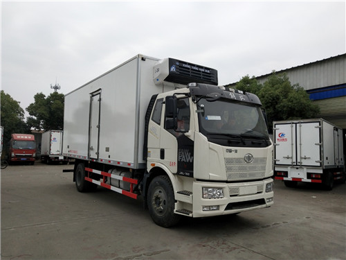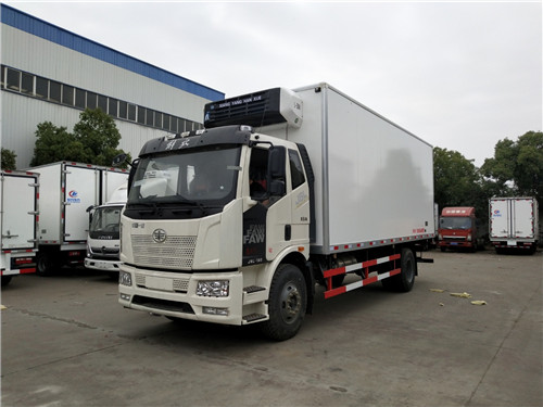 解放J6L廂長7.5米/9.6米國六冷藏車整車型號CA5180XLCP62K1L5E6型冷藏車,底盤型號CA5180XXYP62K1L5E6,總質量:18000kg,額定載質量:9900,9965kg,整備質量:7905kg,駕駛室準乘人數(人):3,2人,軸數:2,整車尺寸:9860,11960×2600×4000mm,廂體尺寸:7500,9600×2420×2500mm,解放J6L廂長7.5米/9.6米國六冷藏車圖片展示 :