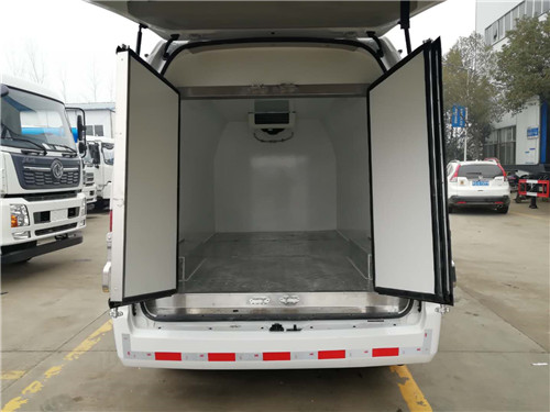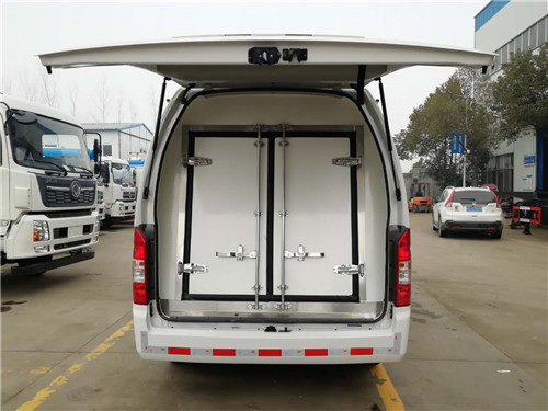 國六福田G9面包冷藏車上裝配置:廂體采用內玻璃鋼板,內膽式一次成型工藝制作,廂體保溫材料采用5個厚聚氨酯發泡,采用漢雪制冷機組溫度可控,最低可調-15度制冷機組,其它標配。國六福田G9面包冷藏車圖片展示:
