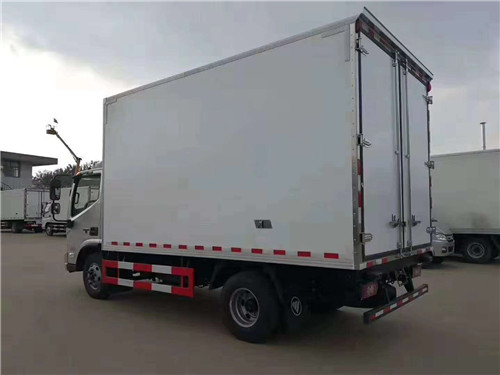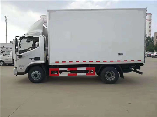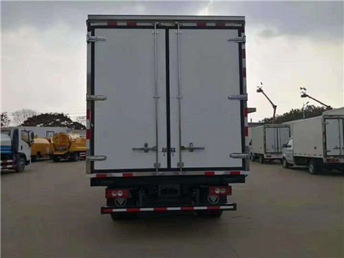 【國六 福田歐馬可S1冷藏車上裝配置】廂體采用內外玻璃鋼板制作,中間高密度保溫板,廂體厚度8㎝,地板鋁花紋板,鋁合金型材包邊,門框、鎖件為不銹鋼。