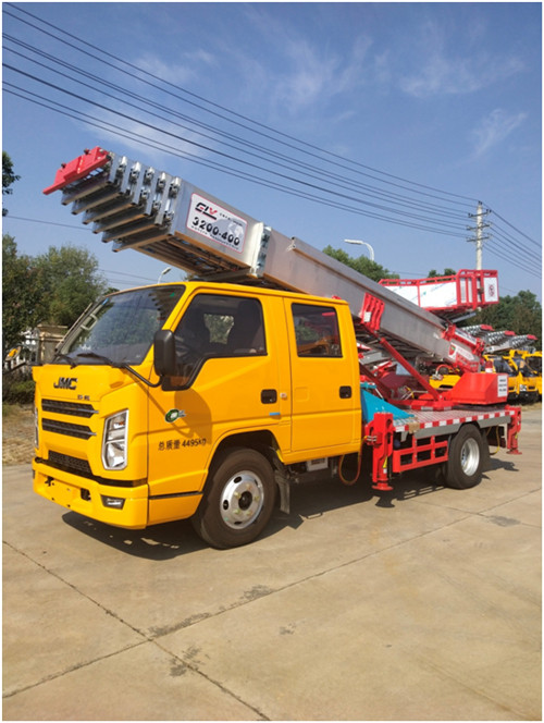 32米國六云梯車又叫云梯搬運車、高空運輸車、高空作業車、 云梯搬家車。該車主要用于工程租賃、幕墻施工、樓頂 防水作業、太陽能安裝,廣告高炮、電力維修、空調安 裝、搬家公司、水泥沙石搬運、船舶維護、 路橋修護等。作業范圍可達 32 米高相當于 11 層樓,最大承載貨物重量 400 公斤。