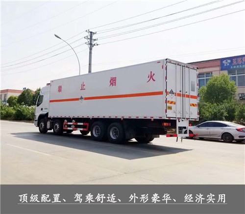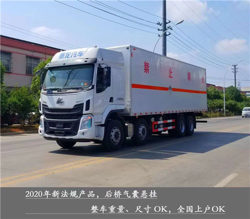 危化廂式市場最大只,總質量32噸1-9類危險品運輸首選車型,東風柳汽乘龍8X2(前四后八)危貨廂式運輸車圖片展示:
