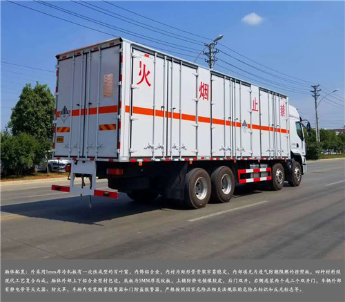 東風柳汽乘龍前四后八危貨廂式運輸車廂體配置:嚴格按照公告尺寸制作,外板采用1mm厚冷軋板有一次性成型的百葉窗,內飾為導電性能良好的鋁板有透氣孔,內襯為矩形管骨架牢靠穩定,內部填充為透氣防潮阻燃的擠塑板,四種材料經現代工藝復合而成,廂體外部上下鋁合金型材包邊,底板和車廂前下部鋪橡膠皮,后門雙開,右側中部單開門,霧報警器和門防盜報警器,嚴格按照國家危險品相關法規張貼。