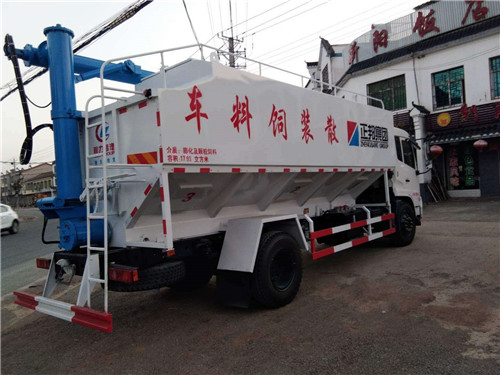 云南正邦定購東風天錦22方飼料車上裝罐體容積約22立方,罐體采用4mm優(yōu)質(zhì)碳鋼板制作,罐體內(nèi)分為叁個倉,可獨立控制各分倉卸料順序和速度,整車3條蛟龍(底部水平絞龍、尾部垂直絞龍、頂部卸料絞龍),由液壓泵帶動各絞龍工作,頂部絞龍液壓控制舉升,可左右旋轉(zhuǎn)180°,整車尺寸:9000×2450×3800mm,罐體尺寸:6100×2420×1930mm .想了解更多東風天錦22方飼料車價格,圖片,參數(shù),可以來電咨詢!13607289999黃先生/15897606159葉女士(微信同號)。