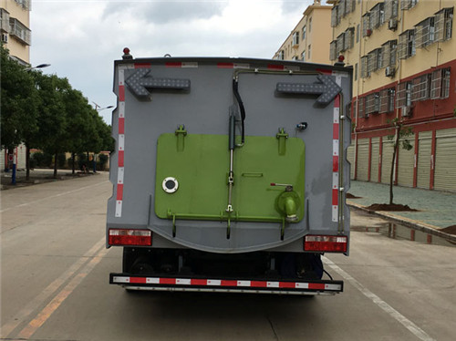 6)具備倒車保護裝置,在作業(yè)過程中如遇緊急倒車,智能化的控制系統(tǒng)會自動停止作業(yè)并收回掃盤、吸盤和側(cè)噴桿;具有防止舉升垃圾箱翻車保護;具有檢修安全保護。