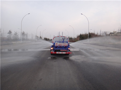 后灑:車輛尾部具有兩個(gè)噴灑扇形水的噴頭,可有效的對(duì)路面進(jìn)行降塵、降溫及道路施工養(yǎng)護(hù)。