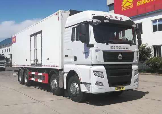 國六重汽汕德卡前四后八9.5冷藏車整車型號ZZ5326XLCV466HF1K型冷藏車,底盤型號ZZ1326V466HF1K,總質(zhì)量(Kg):32000,額定載質(zhì)量(Kg):17770,17705,整備質(zhì)量(Kg):14100,駕駛室準(zhǔn)乘人數(shù)(人):2,3,貨廂尺寸(mm):9450×2400,2450×2450,2500,2600mm,外形尺寸(mm):12000×2600×3980mm,國六重汽汕德卡前四后八9.5冷藏車圖片展示: