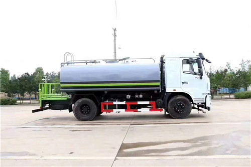 國六東風華神F5 灑水車采用大流量水泵60-90,基本灑水功能前沖、后灑、側噴、高位花灑,工作平臺帶高炮(可調節成霧狀、直柱狀)、可泵進泵出、罐體兩側炮筒、帶兩根抽水軟管。