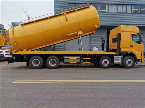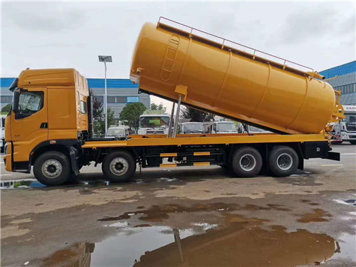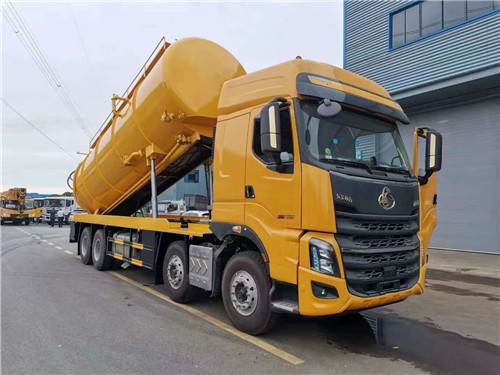 東風柳汽8*4清洗吸污(超豪重載版)上裝:優質碳鋼8MM罐體,容積約33方(清水7/污水26),兩倉互通,自動液壓絞盤,自帶排污口、排污閥、排氣閥、吸污閥、吸污管,高壓泵,不銹鋼水箱、加大工具箱,前中置140油缸,600液壓門,尾部700液壓開蓋,420馬力付發配SK42水循環泵,嚴格按公告圖片參數改裝,其他標配。