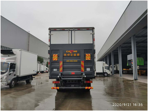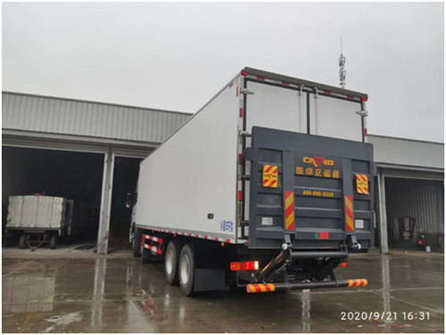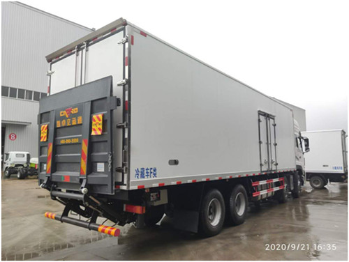 國五東風天龍前四后八冷藏車尾部匹配凱卓立液壓尾板