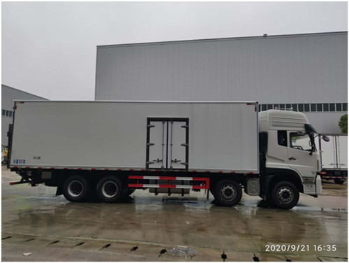 國五東風天龍前四后八冷藏車 整車型號:DFH5311XLCAX1V 整車尺寸:11980*2600*3990 廂體尺寸:9400*2440*2450 總質量:31000kg 整備質量:14680kg ? 國五東風天龍前四后八冷藏車底盤采用東風天龍KL高頂雙臥駕駛室,電動門窗,空調,動轉,斷氣剎,ABS,中控鎖,遙控鑰匙,巡航,多功能方向盤,剎車自調臂,GPS,空氣減震氣囊座椅,行駛記錄儀,液晶顯示屏,可調大燈,10噸德納免維護后橋,雷諾465馬力,東風14