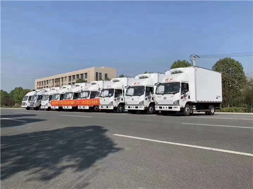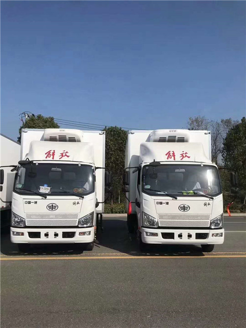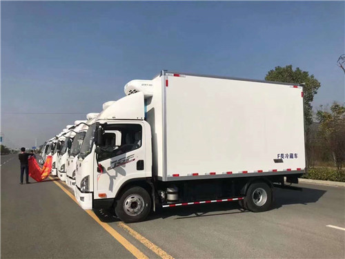 解放J6F國六冷藏車底盤采用2010mm單排??駕駛室(臥鋪+主座椅枕頭??可拆卸),3300mm軸距,國六大柴061??馬力,6檔鋁合金變速箱,5噸級,速比4.333 輪距1740后橋,7.50R16絲鋼??胎,多功能方向盤,液晶儀表,熱加電??后視鏡,120L油箱,ABS,定速巡航,空調,動電??門窗,中控鎖,鋁合金儲氣筒,L61??尿素箱,氣喇叭,導流罩,板簧3/7+9,輕量化。解放J6F國六冷藏車150臺訂單部份車輛發車中。