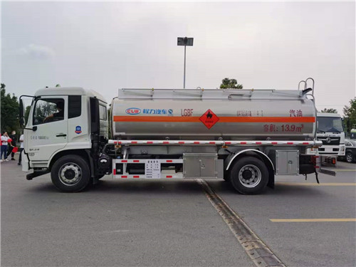東風天錦14方鋁合金運油車整車型號CLW5181GYYLD6型鋁合金運油車,底盤配置:東風天錦國六原廠底盤,康明斯210馬力發動機,275/80R22.5真空胎,帶空調,前橋盤式制動、限速裝置,電動門窗,ABS,帶后橋空氣懸掛。