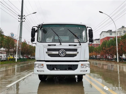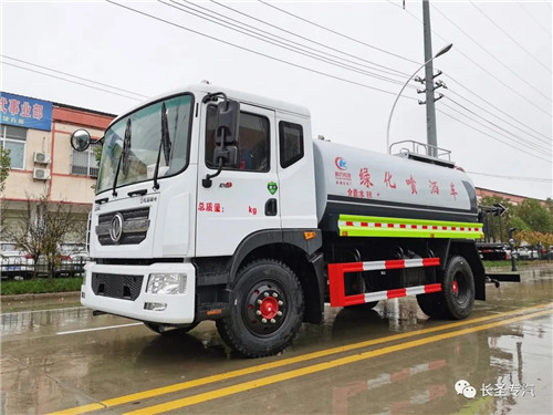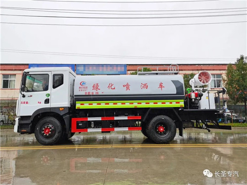 我公司生產灑水車,標配前沖、后灑、側噴、后置式工作平臺、平臺上有高壓水炮(可360°旋轉,可調成柱狀最大射程35米,也可調成霧狀最大射程15米,可調成:直沖狀、大雨、中雨、小雨、毛毛雨),配備優(yōu)質大功率專用灑水泵,取力器,雜物過濾網,國標通用65型消防接口(可通過消防栓加水)、1套自流球閥系統(tǒng)(可自吸自排,可從河里或池塘抽水到罐體,最大吸程7米),2根引水鋼絲膠管。水泵、取力器、球閥、濾網均為國家標準產品,主管道加粗,法蘭墊、法蘭盤加厚,萬向前沖,大通徑球閥,具有性能優(yōu)良,工作可靠、效率高、流量大、維修方便等特點。