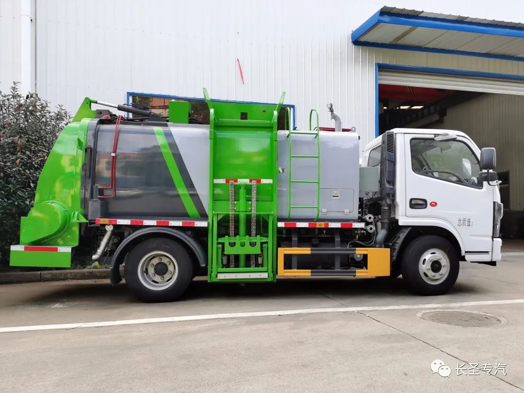 餐廚垃圾車作業方式是將桶裝“泔水”經該車輸送帶緩緩上輸,在車頂部倒入車廂內(車廂可分為廂體和罐體),被投放的垃圾經過強有力的推板擠壓,然后固液分離,被分離的液體進入罐體底部的污水箱,固體垃圾被壓縮儲存在罐體,體積變小,如此反復待裝滿后送至餐廚垃圾資源優化處理廠。整個過程,實現自動化。餐廚垃圾的分類收集,集中處理,不僅需要后期無害化、資源化的處理設備,還需要收集、運輸的專用車輛。因餐廚垃圾含水量高、成分復雜等特點,要求車輛密閉性好、操作簡便安全,裝卸效率高且方便,并要求與后期資源化設備配套。