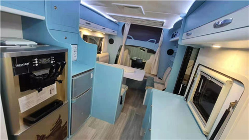 上汽躍進H300自動檔冰淇淋房車整車型號CLW5044XLJSH6型旅居車,底盤型號SH1043ZFDCMZ,總質量(Kg):4495kg,整備質量(Kg):4080kg,額定載客(人):4-6人,外形尺寸(mm):5950×2300×3140mm,軸距(mm):3308mm,軸數:2,燃料種類:柴油。上汽躍進H300自動檔冰淇淋房車圖片展示: