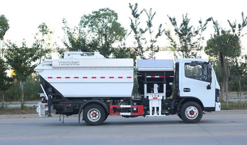 4、前垃圾箱配置單桶上料機(jī)構(gòu),可匹配120L/240L標(biāo)準(zhǔn)塑料桶;