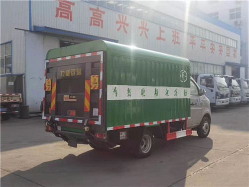長安國六密閉式桶裝垃圾運輸車上裝箱體采用Q235碳鋼板制成,廂體尺寸為3010X1565X1365mm,箱體頂部可電動推桿舉升。箱體內部可裝載10桶標準240L垃圾桶,箱體尾板采用凱卓立液壓尾板,電控液壓操作,可完全垂直平放地面,一次可提升500kg的貨物。