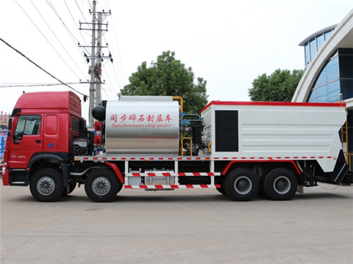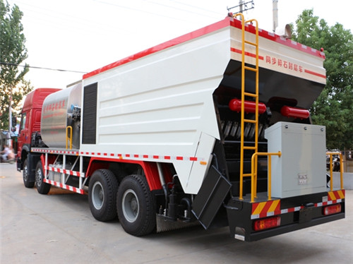 同步碎石車主要有瀝青灑布系統、石料撒布系統、電氣操作系統、輔機系統組成。