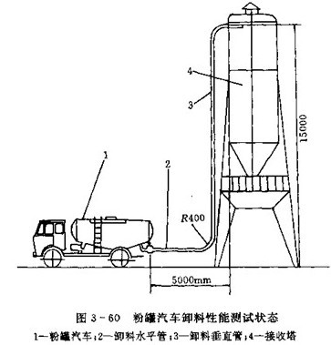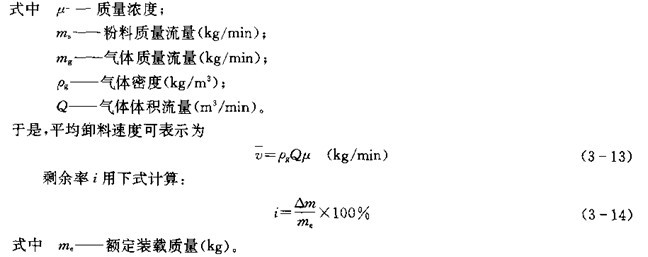 為了正確地評價和比較平均卸料速度和剩余率,一般在如圖3-60所示狀態(tài)下,規(guī)定卸料水平距離5m,卸料垂直高度15m,卸料管內(nèi)徑100mm,壓縮氣體流量4-8m3/min,壓力196 KPa的條件下進行測量,這種狀態(tài)叫做標準狀態(tài)。平均卸料速度