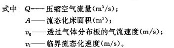 (1)壓縮空氣流量與粉料流態(tài)化的關(guān)系,如前所述,透過氣體分布板的氣流速度應(yīng)滿足下式粉料才會產(chǎn)生流態(tài)化,亦即壓縮空氣流量必須符合下式要求。