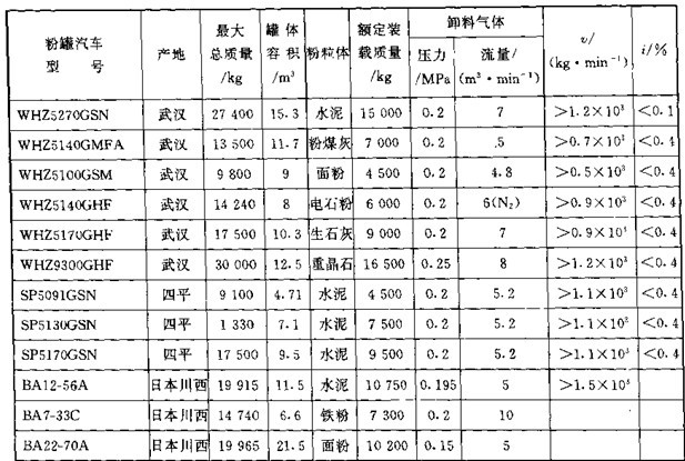 所能達到的最大值受罐內(nèi)流態(tài)化裝置和氣力輸送條件限制,故增加Q值是提高卸料速度的有效途徑。表3-5列出了部分粉罐汽車的Q值。表3-6列出了部分粉粒體在粉罐汽車上氣力輸送所能達到的平均卸料速度