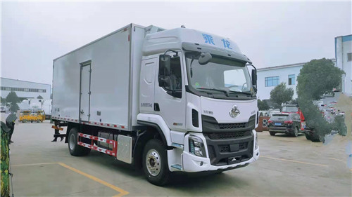 國六東風(fēng)柳汽乘龍H5冷藏車(高頂雙臥豪華版)底盤采用東風(fēng)柳汽H53S駕駛室,YCS06245-60A,8JS95E-C,3.6T前橋,后橋9T/4.11板簧11/12+9,264(6)車架,350L鋁合金油箱,國產(chǎn)方向機(jī),275/80R22.5,機(jī)械全浮式駕駛室懸置、液壓機(jī)械翻轉(zhuǎn)、夾層玻璃、電動(dòng)玻璃升降器、氣囊減震司機(jī)座椅,LCD液晶儀表、自動(dòng)空調(diào)、定速巡航系統(tǒng)、ABS、外部遮陽罩、鋁合金儲(chǔ)氣筒、中控鎖、自動(dòng)調(diào)整臂、多態(tài)開關(guān)、真皮多功能方向盤、右轉(zhuǎn)提示音響、行駛記錄儀、MP5、倒車影像、T-BOX.