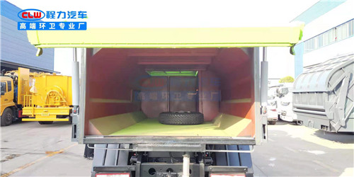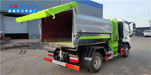 上裝配置:箱體采用Q235碳鋼板焊接而成,箱體底部油缸舉升自卸,側(cè)面提升機(jī)可選鏈條式、拉桿式,后門手動(dòng)開啟。