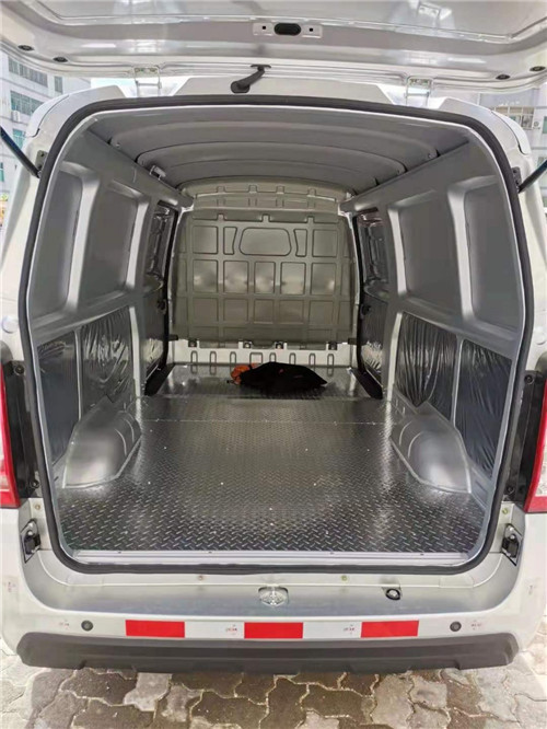 純電動廂式運輸車,超長續航270公里,5.2方超大載貨容積,整車尺寸:長×寬×高(4490×1610×1900),軸距3050,總質量2510,整備質量1445,額定載質量935,最高車速90,電量43,2kwh,輪胎175/70R14C