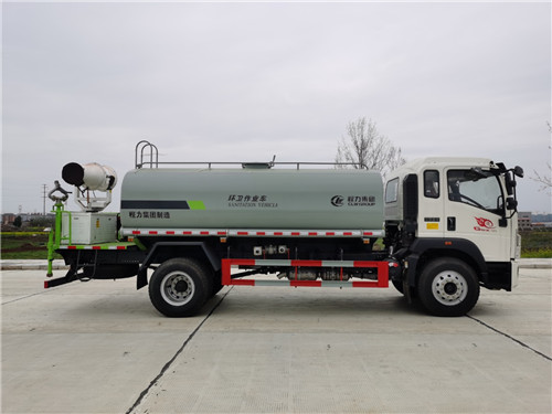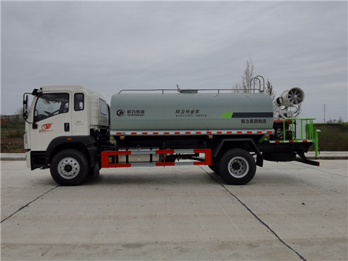 重汽豪沃G5X14方綠化噴灑車上裝配置:罐體容積14方,天億/龍王/億豐60-90水泵,前沖,后灑,側噴,中聯軸承高炮,鍍鋅沖孔平臺,加粗管道,80濾網三通,304不銹鋼大通徑球閥,,消防出口,2根吸水管,尾部選裝30米霧炮機組。