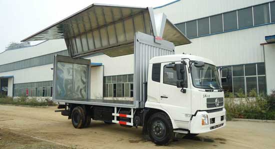 飛翼車又稱翼開啟廂式車、翼展車、兩翼車。已經(jīng)是現(xiàn)代物流企業(yè)十分青睞的運(yùn)輸工具,具有裝卸速度快,效率高等優(yōu)點(diǎn)。我公司生產(chǎn)的翼展車系列,降低了重量、增加了強(qiáng)度、更為美觀!自動(dòng)翼展車,采用液壓系統(tǒng)、自動(dòng)斷電系統(tǒng),使用方便。手動(dòng)翼展車,使用動(dòng)力彈簧及手搖動(dòng)力車,輕松的開啟兩邊的翼板。
