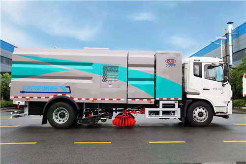 12、左右立掃為單掃盤,減少了掃刷的數量和掃刷消耗量,能降低使用成本。掃刷上加裝噴水裝置,用于噴