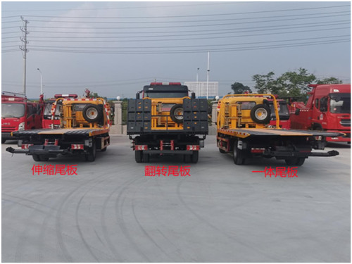 一體板:3噸上裝,4噸卷揚,21米鋼絲繩,3噸后拖臂,底板為花紋一體板(可選沖壓板),板長5.2米,雙側聯動操作,配四根捆綁帶,輔助小車一套,L型抱胎架一對,工具箱一個,LED工作照明燈一對,其余標配。