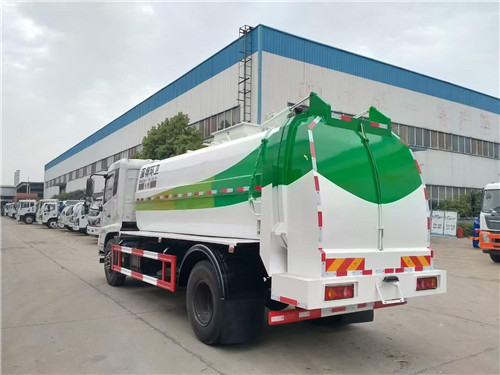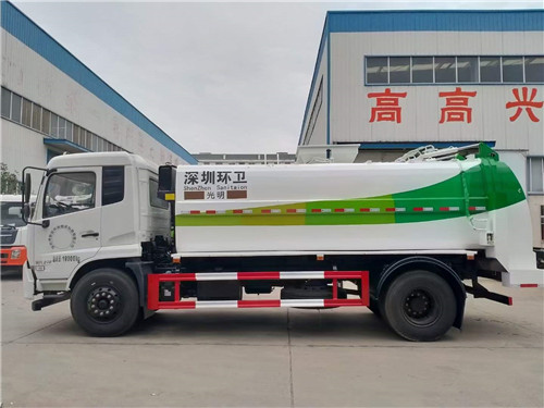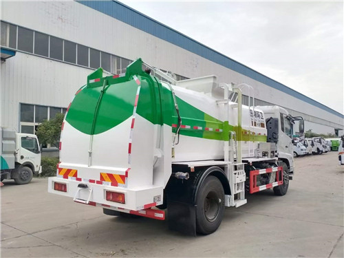 國六東風天錦餐廚垃圾車上裝配置:箱體容積12立方,箱體材質為普通碳鋼材質,提升裝置液壓鏈條結構,可提升一個120L或240L塑料垃圾桶,后門與箱體之間的密封應采用整圈膠條密封,箱體底部干濕分離,液壓全推板卸料,隨車清洗功能帶自動回味卷盤,箱內暗水箱,液壓主閥采用集成多路閥控制。
