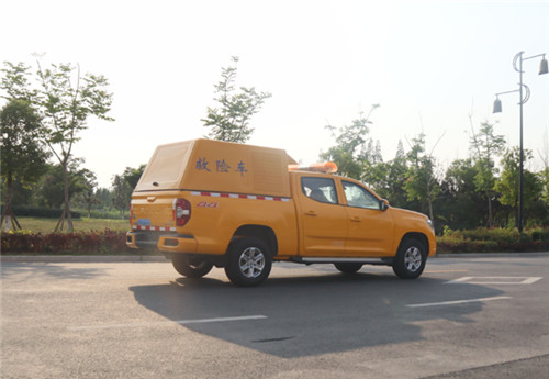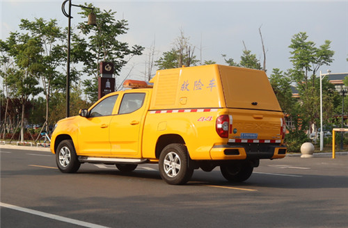 上汽大通500方皮卡排水車實(shí)用新型公開(kāi)了一種消防氣防車,包括車體、駕駛室、艙體,其特征在于,艙體的前端為中隔板,該中隔板上設(shè)有推拉窗、液晶顯示屏、對(duì)講機(jī),艙體內(nèi)前部?jī)蓚?cè)設(shè)有折疊椅、中間設(shè)有折疊桌,該折疊桌上設(shè)有通信電臺(tái),艙體左側(cè)折疊椅的右側(cè)設(shè)有器材骨架Ⅰ,該器材骨架Ⅰ設(shè)有盛放發(fā)電機(jī)的機(jī)艙和多個(gè)置物艙,艙體右側(cè)折疊椅的左側(cè)設(shè)有器材骨架Ⅱ,器材骨架Ⅱ后側(cè)配備滅火器,所述艙體內(nèi)頂部設(shè)有消毒燈、滑動(dòng)輸液支架、升降照明燈,在艙體的中間設(shè)有上車擔(dān)架,在車體左側(cè)后門上設(shè)有折疊擔(dān)架,所述車體的上端設(shè)有長(zhǎng)排燈、外場(chǎng)照明燈、設(shè)備天線、通過(guò)玻璃鋼底座固定的閃燈。本實(shí)用新型的有益效果:結(jié)構(gòu)布置科學(xué)合理,綜合性、一體化程度高。