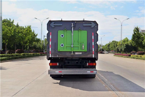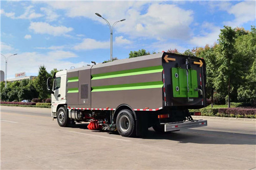 陜汽軒德洗掃車上裝配置:副發動機采用康明斯170馬力六缸副發動機,中置2掃盤,三洋馬達,海普瑞斯電磁閥,自動風機,自動離合器,GTM高壓水泵(前沖/側噴/中噴/后噴霧/沖洗水槍/垃圾箱自潔裝置),高壓路沿清洗噴頭,低壓泵對沖,不銹鋼垃圾箱7立方,水箱9立方,不銹鋼管高壓管路,CAN總線控制,尾部LED箭頭燈,垃圾箱、水箱帶防溢低水位報警裝置,倒車及洗掃狀態室內監視器,20米高壓沖洗卷盤,洗掃寬度約3.5米,洗掃寬度約4米!