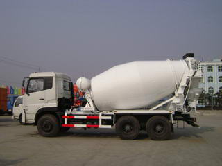 混凝土攪拌運(yùn)輸車由汽車底盤和混凝土攪拌運(yùn)輸專用裝置組成。我國生產(chǎn)的混凝土攪拌運(yùn)輸車的底盤多采用整車生產(chǎn)廠家提供的二類通用底盤。其專用機(jī)構(gòu)主要包括取力器、攪拌筒前后支架、減速機(jī)、液壓系統(tǒng)、攪拌筒、操縱機(jī)構(gòu)、清洗系統(tǒng)等。工作原理是,通過取力裝置將汽車底盤的動(dòng)力取出,并驅(qū)動(dòng)液壓系統(tǒng)的變量泵,把機(jī)械能轉(zhuǎn)化為液壓能傳給定量馬達(dá),馬達(dá)再驅(qū)動(dòng)減速機(jī),由減速機(jī)驅(qū)動(dòng)攪拌裝置,對(duì)混凝土進(jìn)行攪拌。