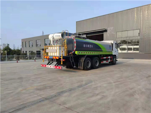 國六陜汽商用19方綠化噴灑車(可選裝霧炮)底盤配置:氣囊座椅、電動車窗、恒溫空調、中控鎖、多功能方向盤、遮陽罩、10寸多媒體屏+倒車影像、四點全浮懸置、7寸彩色液晶屏組合儀表、發光標徽)、車架:280/8+6雙層、軸距5T、后橋13T+13T