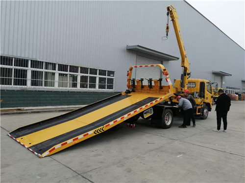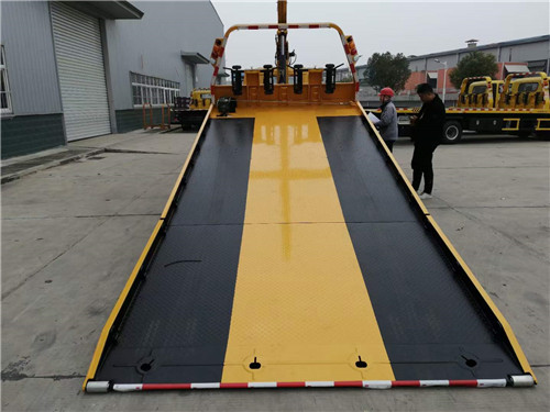 上裝配置,4mm厚度花紋板,4噸板,4噸拖臂,3噸絞盤,板長5.6米,板寬2.45米,國六東風D8清障車圖片展示: