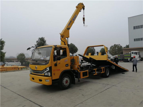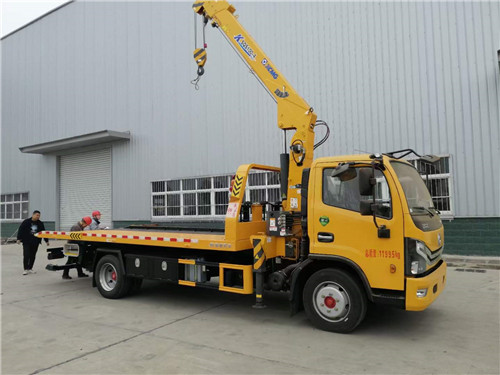 國六東風D8清障車,配置徐工4噸4節臂吊機,玉柴165馬力,6檔變速箱,8.25/16鋼絲胎,235大梁。