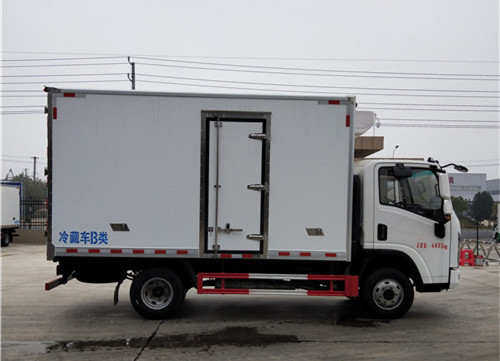 陜汽商用軒德4×2 翼9藍牌冷藏車 上裝配置:箱體采用內外玻璃鋼,中間8cm厚保溫擠塑板,鋁花紋底板,鋁合金型材包邊、直角條,不銹鋼鎖件、鉸鏈、門框帶隔熱條,LED箱內照明燈,飛機梁,4層迷宮式隔熱門皮條,單開側門,雙開后門,其余標配。