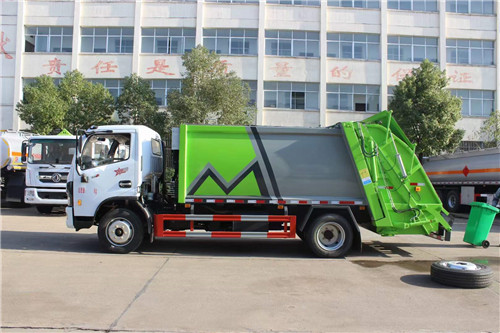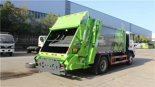 國六東風(fēng)8.5方壓縮式垃圾車上裝配置:箱體容積8.5m3,箱體材質(zhì)Q345,厚度4mm ,合肥長源雙聯(lián)泵,揚州中梅雙聯(lián)閥,煙臺未來油缸(刮板、滑板、翻桶缸),液壓過濾器,雙向壓實閥,CAN總線帶無線遙控。帶防掉桶平衡桿,防撞減震大膠皮,帶氣動密封蓋,尾部掛桶裝置,帶污水箱和活動爬梯,其余標(biāo)配。