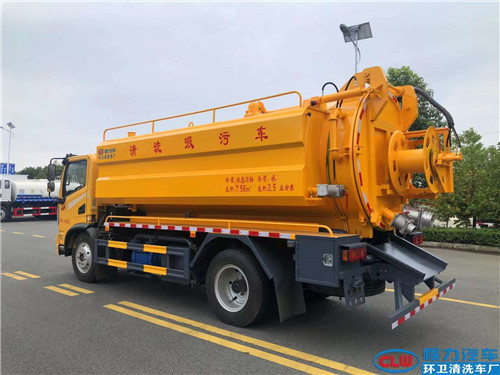 國六東風(fēng)華神清洗吸污車上裝配置:污灌容積9立方,采用武鋼優(yōu)質(zhì)鋼板制作,壁厚6個(gè)厚,清水箱3.75立方,壁厚4個(gè)厚,帶水污互通,氣吹水,安裝215流量高壓泵,SK-12水環(huán)泵,尾部100吸污口,150的排污口,罐體帶舉升功能,后蓋可液壓開啟,顏色:工程黃