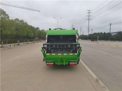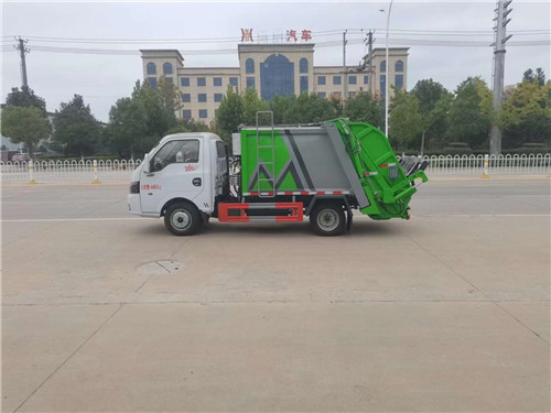 國六東風途逸3.5方藍牌后裝壓縮垃圾車上裝配置:弧形箱體,箱體采用錳板制作,容積3.5方,西門子PLC操控系統,帶一鍵操作,帶污水箱,帶爬梯,隨州多路閥,長源泵,帶駕駛室操作。尾部為掛桶機構(可掛2個120L/240L垃圾桶),其余標配。整車外觀及尺寸嚴格按公告執行。