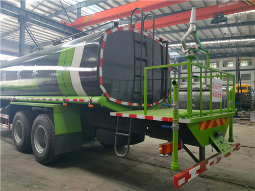 國六東風T5后雙橋20方綠化噴灑車,可加裝霧炮。 國六東風T5后雙橋20方綠化噴灑車底盤配置:EQ1250GL6DJ,玉柴245,軸距4350+1350,陜齒八檔變速箱,前5T,后雙10T,11.00鋼絲胎,空調,氣囊座椅,中控鎖,多功能方向盤,記錄儀,MP5大顯示屏。 國六東風T5后雙橋20方綠化噴灑車罐體容積20立方,罐體采用標準Q235碳鋼制作,板材厚度5mm,配大功率專用灑水車,可自吸自排,前沖后灑,側噴,高位花灑,主管道加粗,直通球閥式消防接口,帶后工作平臺,沖孔平臺,帶高