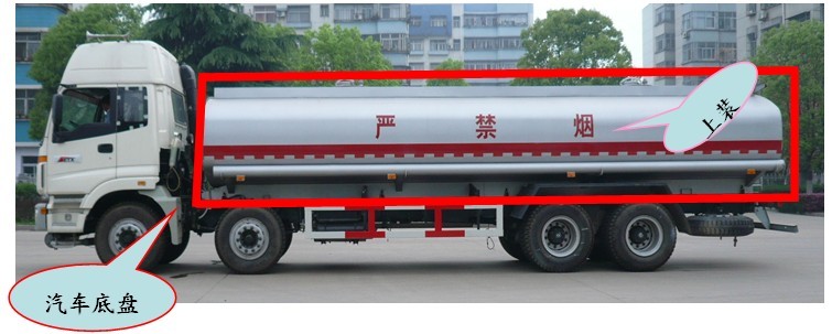 1、整車產(chǎn)品結構 :液體運輸車由汽車底盤和上裝兩部分組成。
