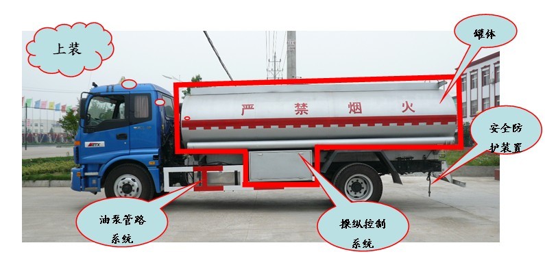 上裝部分:上裝部分主要由罐體、控制系統(tǒng)、油泵管路系統(tǒng)及安全防護裝置組成。