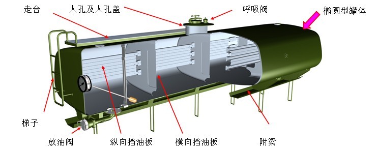 罐內(nèi)部設有橫向、縱向隔板,減輕汽車行駛加速及減速時罐內(nèi)液體的波動。