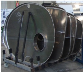 (2)罐體部分---防波板:防波板為碟形,且?guī)в腥丝祝ㄖ睆酱笥?50mm),罐體內(nèi)防波板間隔一般為1.2-1.5米,罐體內(nèi)隔板的人孔不在同一直線上,有效降低罐體內(nèi)油料的前后沖擊。