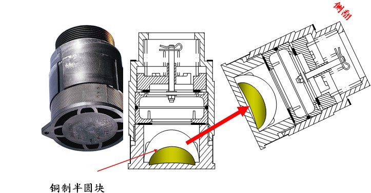 側翻:•傾翻時的密封 - 在正常情況下, 銅質(zhì)半圓重塊位于閥底部,傾翻時重塊在重量作用下翻動, 封住閥口