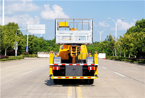 最大作業(yè)高度23米,鏈條伸縮機構(gòu),四節(jié)工作臂同步伸縮,前V后H型方形支腿,穩(wěn)定性更高,可聯(lián)動也可單獨調(diào)節(jié),支腿帶爆閃燈,鋁合金工具箱,不銹鋼圍欄,鋁合金花紋防滑走臺板,工作平臺和地面遙控電氣操作,工作臂可360 度連續(xù)回轉(zhuǎn),不銹鋼工作斗可360度旋轉(zhuǎn)帶電機調(diào)平,工作斗最大承重200公斤,電腦控制,自動限幅,安全性能卓越。主要配套液壓件、電器件、平衡閥、控制器均為品牌件。帶應(yīng)急泵,當發(fā)動機及主泵發(fā)生故障時,可將工作人員送回到地面。